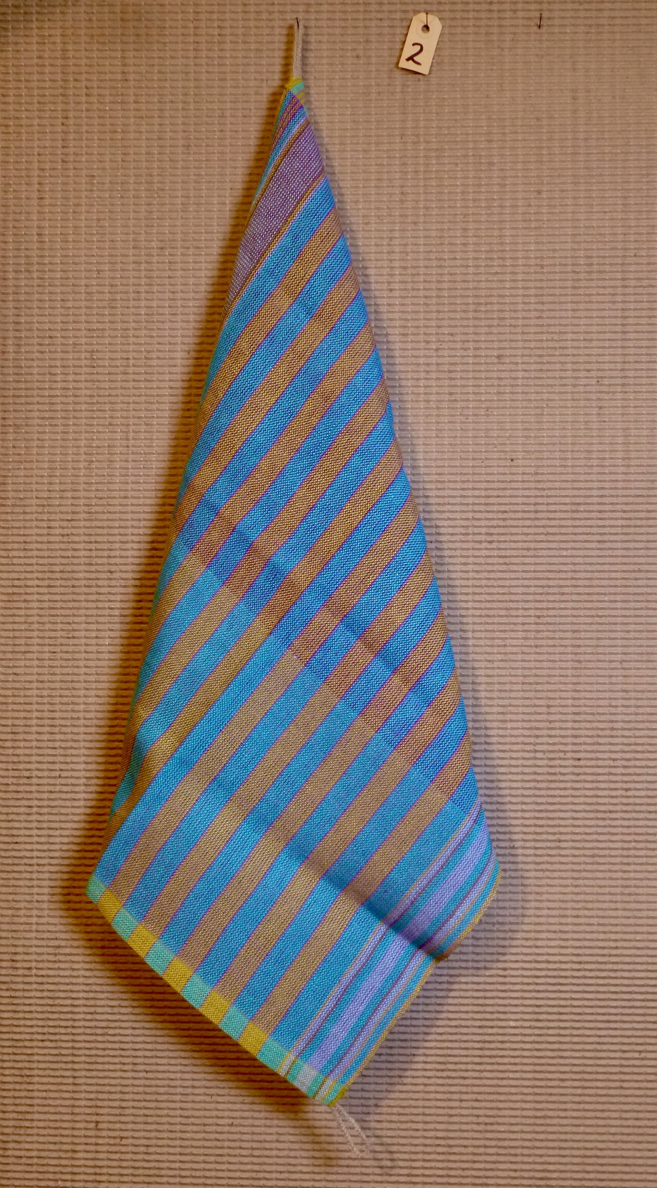 Het afgedankte beddengoed verven we en daarna scheuren we er smalle stroken van en verwerken die in de weefsels. De stroken katoen geven een stoere structuur en absorberen goed. Het voelt heerlijk ruw aan.
